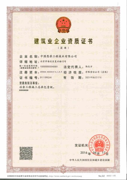 修建业企业天资证书